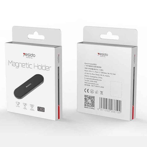 ابعاد بدنه هولدر مگنتی 6.4*1.9*.4 سانتیمتر است .جنس بدنه این محصول از آلیاژ روی و سیلیکون ساخته شده است .طراحی داخلی این محصول با 6 آهنربای قوی N50 جهت ایمن نگهداشتن گوشی در حین حرکت و دست اندازهای شهری است البته گفتنی است این مگنت ها سیگنال مزاحمی به سمت گوشی شما ارسال نمیکنند.همانطور که از سایز این محصول مشخص است طراحی کوچک و جمع و جور است به طوری که در هنگام نصب بروی داشبورد ماشین تنها 1.9 سانتیمتر فضا میگیرد .هولدر مگنتی YESIDO C83 قادر است گوشی و تبلت از سایز 3.5 الی 7 اینچ را به صورت ایمن و ثابت نگه دارد .